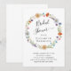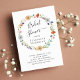 Boho-inspired bridal shower invitation featuring a watercolor wreath of floral wildflowers and "Bridal Shower" in an elegant swash script.