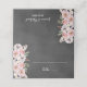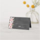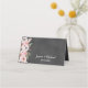 Boho wedding place card with blush pink watercolor flowers, on black chalkboard background.