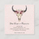 Boho Floral Cow Skull on Pink Hearts Background Square Business Card