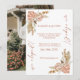 This watercolor boho floral elopement announcement features terracotta, pink, and beige tones. Freely personalise to add your names, date, and reception invitation! The floral arrangements display dried pampas, monstera, palm, and a variety of other plants to give it its bohemian feel. Easily customise the text, text colours, and background.
