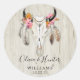 Boho Floral Feather Antler Cow Skull Wedding Classic Round Sticker