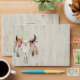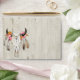 Boho floral and feather antlers cow skull rustic wood wedding envelope.