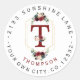 Unique circular address label design featuring faux golden hexagon, Burgundy, navy blue watercolour floral letter (your initial), circular script. Use Customise tool to add your info, initial and maybe you have to tweak to fit, change the font colours. Add a space between letters and double space between words for this "look".