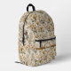 Ivory and pale orange flowers, with light teal and tan accents, on a beige background, create a delightfully boho backpack.