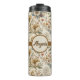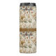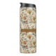 Ivory and pale orange flowers, with light teal and tan accents, on a beige background, create a delightfully boho thermal tumbler.