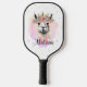 A pretty personalised pickleball paddle with a cute floral llama on a soft pink background. This unique design features an adorable white llama with a crown of wildflowers. The monogram can be personalised.