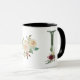 This boho floral monogram coffee mug is so pretty with the letter J on both sides of the mug and a bouquet of flower in between each letter.