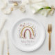 These adorable Boho Floral Rainbow Baby Shower 9" round paper plates would be so cute at your loved one's baby shower. They feature a watercolor rainbow in pinks and golds with wispy wildflowers at its base and climbing up its sides, and star and flower confetti sprinkling down softly. They're modern yet classic, happy and bohemian. They're perfect for celebrating the mummy-to-be and her soon to be born baby/babies. They'll look fabulous on your tables, buffet, counters and bar.