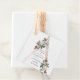 A feminine baptism thank you favour gift tag featuring beautiful vintage botanicals atop a rose gold structural triangle shape.