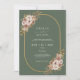 Boho Floral Sage Green and Gold Wedding Invitation. This invitation has a soft, elegant style with a feminine floral frame. Delicate floral illustrations add a touch of whimsy and nature-inspired charm. The layout is clean and organised, using a centred alignment and clear spacing to create a refined look.. Overall, the design feels romantic yet understated, perfect for a modern but traditional wedding.