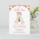 Chic rustic boho 1st birthday party invitations. This design features feminine watercolor flowers, teepee and pink polka dot background.