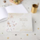 A beautifully presented guest book which came with a lovely gift box for storage. The book was hard back so stayed fresh after being handed around to all our wedding guests. We had lots of compliments about the design which went perfectly with our theme. Perfect, no issues at all with the printing. It arrived on time and came well packaged.