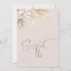 Sweet bohemian floral sweet sixteen birthday invitation featuring a blush floral arrangement with pampas grass. The heading is a faux copper image that can be removed.