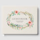 In lovely boho style, this guest book design features a wreath of twigs, flowers, leaves and berries in watercolor hues. Shown here as a wedding guest book, all of the text may be edited to suit any occasion. The background colour is a neutral beige and may be customised to any other colour.