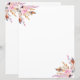 Matching paper sheet, insert for our 3-ring binders. A chic white background with pink florals, roses, sprigs and brown, golden feathers. Summer boho, bohemian style.