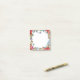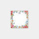 Floral square post-it notepad with colourful flowers in different shades of coral red, orange, and pink. Add your initials in dark blue letters.