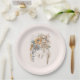 Paper plates with a pretty bouquet of flowers in neutral colours of brown, peach and orange. A feathered dreamcatcher adds an elegant mystical flair.