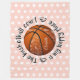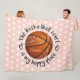 This cute basketball themed fleece blanket for girls features the image of a stylised basketball encircled with the text, "The basketball court is my happy place" in black in a fun and casual, handwritten style font with two hand drawn heart outlines - delicate hand-drawn doodle flowers, feathers and paislies are patterned on the basketball's alternating panels - a tiny basketball dots pattern overlies the customisable pastel peach background - katz_d_zynes