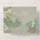 This design features a boho modern simple destination an elegant seal and sends with a modern QR code website online, scannable URL scan guest information, an elegant seal and send, trifold tri fold budget wedding, green tropical leaves leaf, botanical beach ocean coastal, with watercolor sage lime greenery foliage, elegant simple minimalist minimal, a rustic classic calligraphy script font and photo placement for lovely couple picture.
