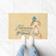 Whimsical front doormat features "Love makes the world go round" quote in modern script with adorable Boho fox on distressed chevron pattern background