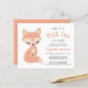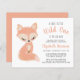 Cute budget-friendly "little wild one" baby girl sprinkle invitation featuring a boho watercolor illustration of pretty pink and terracotta fox cub. "Wild One" and the mother-to-be's name are in a terracotta script.