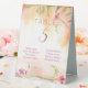 Handpainted style floral table card. Tropical colours and a free boho look in peach, mango, tangerine, and pink pop. Pretty, romantic freesia flower with watercolor wash on the front of the design. Artistic.
