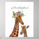 A baby shower poster featuring an illustration of a mama giraffe with flower crown and baby. Personalize the name. Matching baby shower invitations and coordinating items are available at Jill's Paperie.