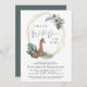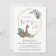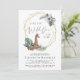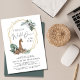 Simple boho gender-neutral baby shower invitation featuring a geometric gold frame with watercolors of a giraffe, tropical florals and sage green monstera and fern leaves. "A Sweet Little Wild One Is On His Way" is written in a mix of unique typography and a contemporary script. You can specify the gender ("e.g., "is on his way") if desired.