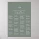 This boho green alphabetical wedding seating chart is perfect for a rustic wedding. The design features an elegant calligraphy font in a green background to embellish your event.