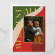 Boho Green and Red Swirl Photo Foil Holiday Card