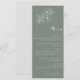 This boho green destination floral wedding menu card is perfect for a rustic wedding. The design features watercolor apple blossoms and flowers in a green background.