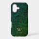 Boho Green Floral Gold Monogram Phone Case. Monogram is an elegant gold serif font and your name is a white sans serif font.