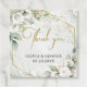 Elegant boho design for wedding favour tags features Watercolor hand painted white flowers roses peonies mixed sage eucalyptus greenery and woven into faux gold frame , combined modern script lettering. Modern script lettering.