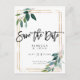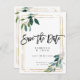 A pretty boho greenery floral and faux gold frame design save the date postcard. Easy to change the text details to your own. Lots of matching stationery in this pretty collection. Please visit my shop to see the full range.