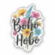 Simple boho style flower bouquet in yellow, blue and pink shades.