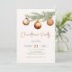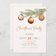 Minimalist neutral Christmas party invitation featuring watercolor pine tree branch decorated with Christmas ball ornaments.
