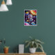 Poster Child: Hippopotamus Cute and Funny Sailing in Space in Rocky Mountain | Unique Wall Decoration for Children's Room, Perfect Gift. Turn your child's bedroom into a magical universe with our enchanting poster depicting a cute and funny hippopotamus traveling through space aboard a rocket. This captivating poster, in bright colors and adorable design, will stimulate the imagination of your little explorer.