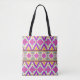 This design is a Hawaiian inspired, abstract, tribal pattern in bright colours including turquoise, purple, green, brown and pink.