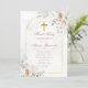 Elegant Modern White Gold Arch Primera Comunión Cross 1st Holy Christening Invitation