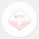 Boho Leaf Monogram Coral Pink Wedding Classic Round Sticker