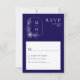 Boho Leaf Monogram Stylish Blue and White Wedding RSVP Card