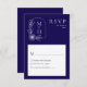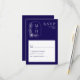 Ensure your guests RSVP in style with this Boho Leaf Monogram Stylish Blue and White Wedding RSVP Card. This modern design features a refined couple's monogram at the top, accented with boho-inspired leaves. The dark blue background and clean white text create a sophisticated and minimalist look.