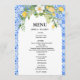 Boho Lemon Blue Mediterranean tile Italian Wedding Menu