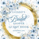 Celebrate your bridal shower in style with our elegant guest book collection, designed to capture heartfelt messages and memories from friends and family. Each guest book features delicate watercolor florals in dusty blue, light blue, pastel blue, pale blue, powder blue, and sage green, accented with a sparkling gold glitter frame for a touch of modern glamour. The boho-inspired floral artwork blends romance and sophistication, making it perfect for rustic, garden, or chic bridal shower themes. Personalise your guest book with names, event date, or a special message to create a unique keepsake that reflects your celebration. A stylish and meaningful detail, these guest books offer the perfect combination of beauty and function, turning warm wishes into a lasting treasure.