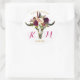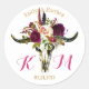 Watercolor fall floral bouquet over longhorn skull and white background thank you label design for a modern bohemian wedding.
