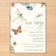This whimsical watercolor baby shower invitation features cute insects (beetle, dragonflies, butterfly) & pretty flowers.