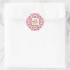 This design is a mandala tribal pattern in bright colours including teal, orange, white and pink.