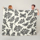 Boho Matisse Botanical Shapes Pattern Black White Fleece Blanket