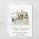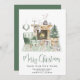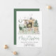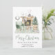 Boho-inspired simple holiday moving announcement featuring a watercolor illustration of a cosy sage green home interior decorated for the holidays with a wreath, fireplace, reindeer, a Christmas tree, candles and gnomes. "Merry Christmas" is written in a trendy sage green script. Add your name and new address underneath. On the reverse side, personalise your moving announcement and Christmas greeting in more detail, and include telephone numbers and email addresses if desired.