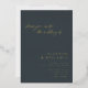 Boho Modern Minimalist Black Hand Drawn Floral Wedding Gold Foil Invitation